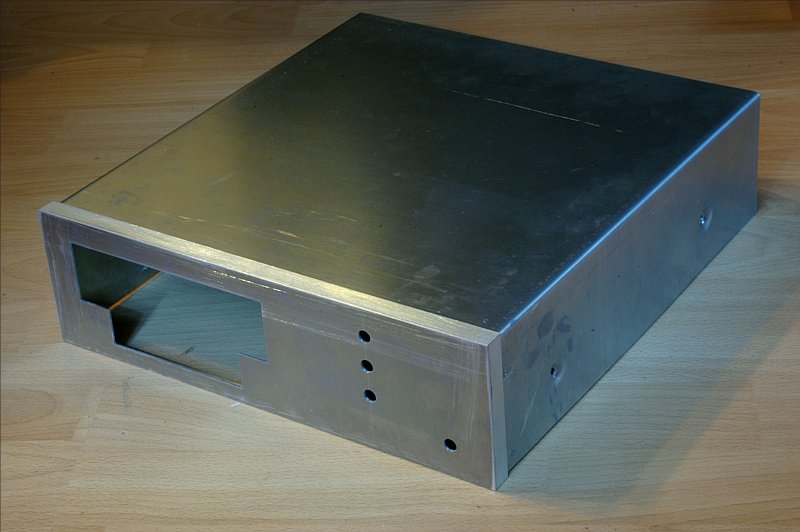 Das Gehäuse besteht aus einem Ober und einem Unterteil. Das Oberteil ist aus 1,5mm Aluminium Blech geformt.