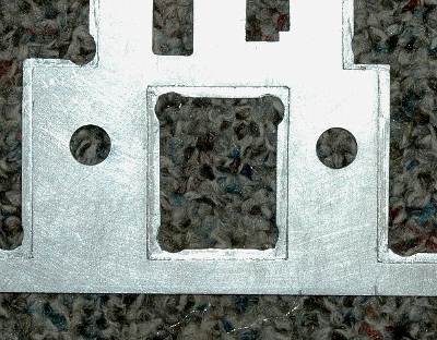 die Seitenwände sind auf Gehrung gesägt und gefeilt , sodas keine großflächigen Schnittflächen zu sehen sind. An der Rückseite der Frontplatte befindet sich die Halterung für die Frontelemente. Auf der Bodenplatte sind Distanzhülsen mit 3mm Gewinde zur Befestigung des Motherbordes angebracht. Das Motherboard hat wegen der erforderlichen Durchlüftung einen Abstand von 10mm zum Bodenblech.