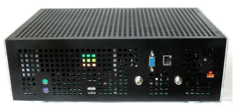 die Deckel/Rückwand-Kombination wird von oben mit 4 Stück und an der Seite unten mit 3 Stück 2mm Schrauben befestigt. Die Satkarten werden zur Befestigung mit jeweils einer Mutter von innen gekontert sowie mit Scheibe und Mutter von außen mit der Rückwand verschraubt. Die Grafikkarte arretiert sich über die Verschraubungen des HD15 Steckers und die Netzwerkkarte bekommt durch die genaue Passform des RJ45 Buchsengehäuses in der Rückwand festen Halt. | |||||||||||||||||||||||||||||||||||||