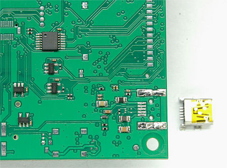 Aus diesen Gründen habe ich mich entschlossen, die vorhandene USB Mini-B Buchse zu entfernen und ein USB Kabel direkt an die Platine des Dice anzuschließen. Diesen Umbau möchte ich hier beschreiben. |