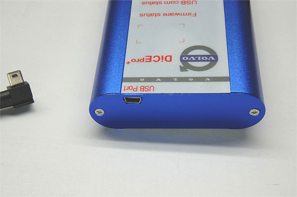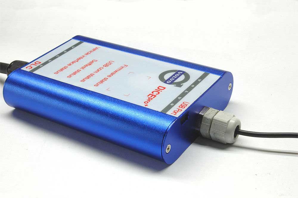 Das Volvo Dice Diagnostic Tool ist ein Schnittstellenwandler, der Daten vom Can-Bus über die OBD2 Schnittstelle holt und sie per USB an einen PC liefern kann. Mittels geeigneter Hersteller Software können dann Informationen ausgelesen und Einstellungen geändert werden. Das Volvo Dice Pro+ hat gegenüber seinem Vorgänger Volvo Dice eine USB Mini B Buchse. Über diese Buchse wird mittels einem USB Kabel eine Verbindung mit dem PC hergestellt. Diese ist aber durch den Winkelstecker störanfällig gegenüber mechanischer Belastung und die USB Mini-B Buchse verursacht auch öfter elektrische Kontaktprobleme beim häufigen Stecken des Steckverbinders.
