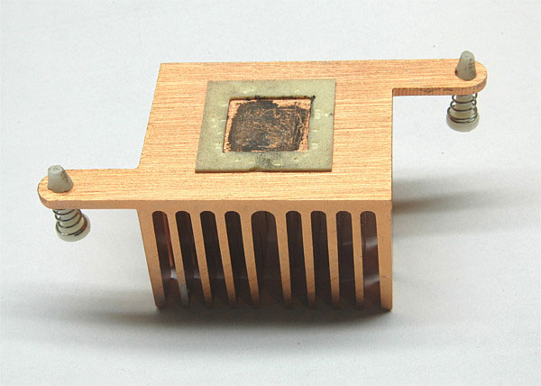 diesen Kühlkörper gewann ich aus einem ausrangierten Motherboard. Er diente dort als Chipsatzkühler. Deswegen hatte er auch eine Aussparung in den Kühlrippen für den angrenzenden PCIe Steckplatz . In diese Aussparung ließ sich die Konstantstromquelle einkleben.