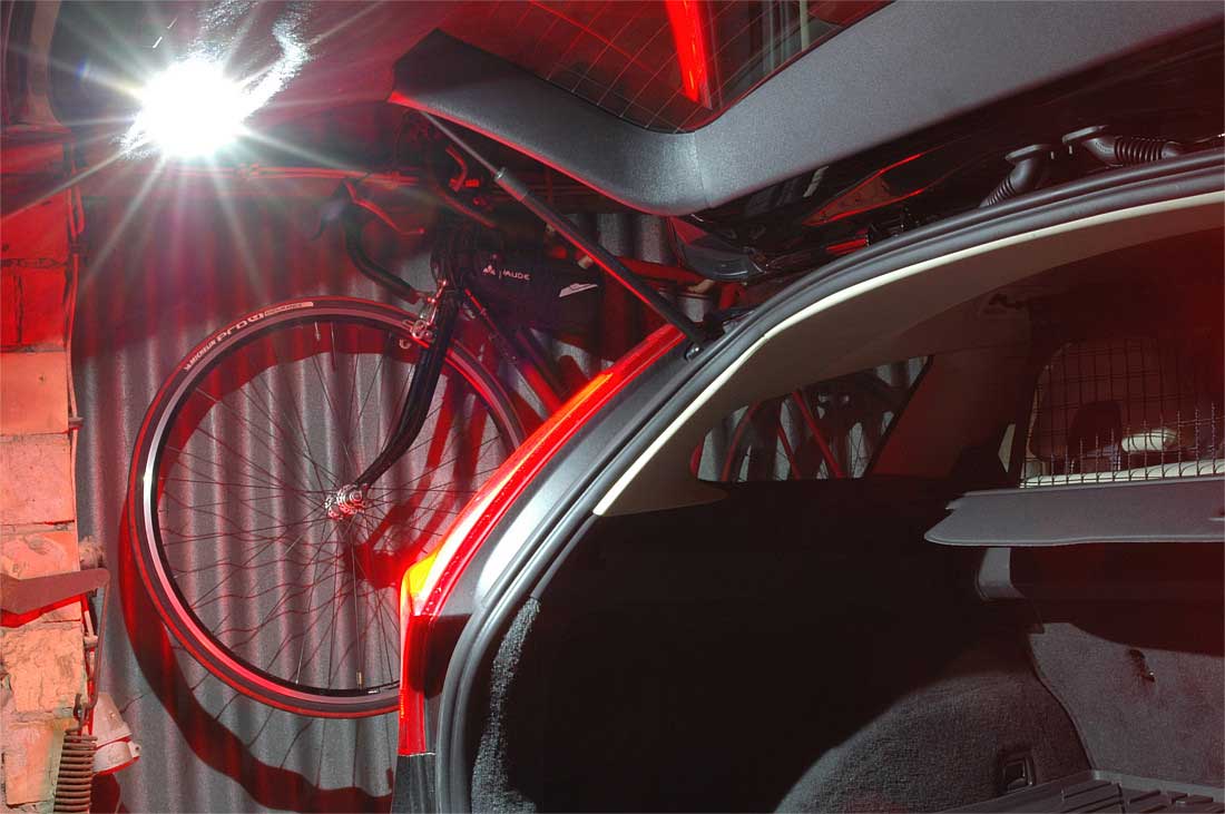 und so sieht die Laderaumbeleuchtung in Aktion aus. Der Rotstich an den Seiten im Bild rührt von den Rücklichtern her, die beim Öffnen der Heckklappe mitleuchten | ||||||||||||||||||||||||||||||