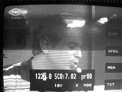 Deutlich sind hier die Frequenzen um 1806 auf der gepunkteten Linie (1806 Mhz Bahn-TV) zu erkennen. Nun können wir Feinjustage mittels Messmodus tätigen. |