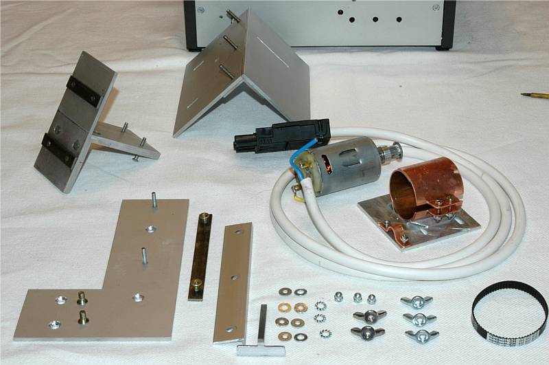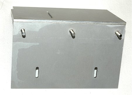 der Motorhalter wird mit zwei Aluminium-Winkeln auf den Motorblock mittels Metallkleber befestigt. Weiterhin befindet sich eine Zugentlastung für das Anschlusskabel auf dem Motorblock.