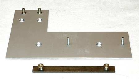 der Motorblockträger verbindet Maschinenbett und Motorvorgelege mittels Klemmplatten miteinander und fixiert den Motorblock über Stehbolzen welcher in Langlöchern justierbar ist . Der untere Schenkel des Motorblockträgers ist gedoppelt, 6mm stark und sorgt für ausreichende Stabilität bei der Kraftübertragung. | ||||||||||||||||||||||