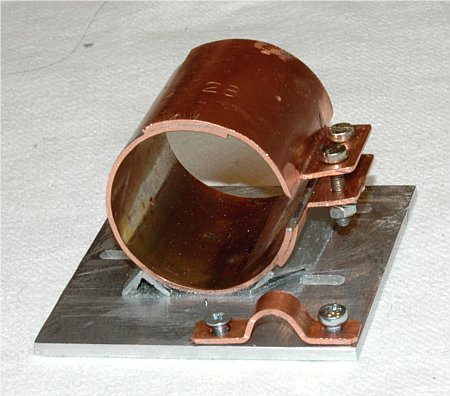 für die Herstellung der Motorhalterung verwende ich zwei Stück Kupferrohr Muffen aus dem Heizungsbau. Die erste Muffe wird längs aufgesägt und auf einem 35mm Rundholz geweitet. Die zweite Muffe wird in zwei Segmente geteilt und abgewinkelt. Danach werden die beiden Winkel mit Zinnlot an die erste Muffe weichgelötet. | ||||||||||||||||||||||