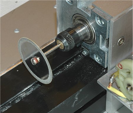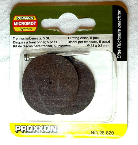 Im Proxxon Micromot System gibt es eine 38mm x 0,6mm Diamantscheibe, welche mit einer langen 2,35mm Achse verschraubt werden kann. Diese Diamantscheibe wird in einer 2,35mm Spannzange fest eingespannt und absoluter Rundlauf kontrolliert. | ||||||||||||||||||||||